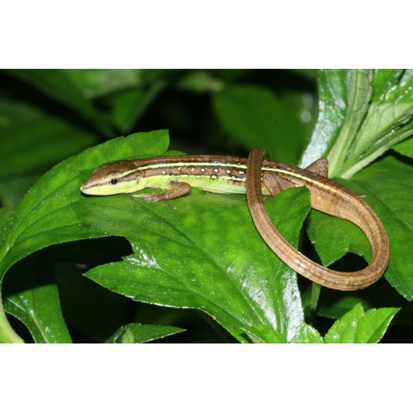 Disponible lagartija arborícola cola de látigo - Takydromus Sexlineatus.